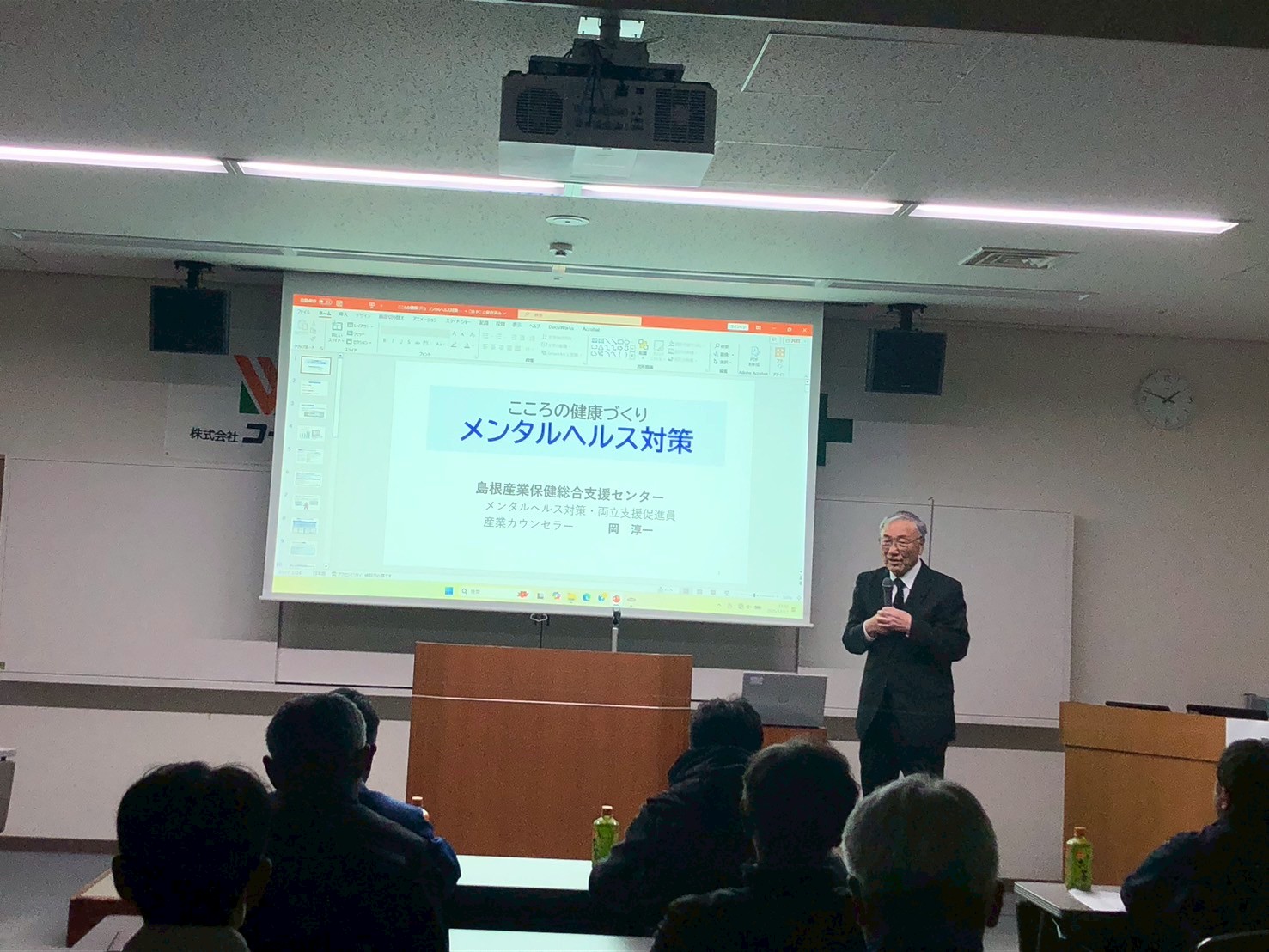 ㈱コーユー 田原代表取締役の挨拶の後、本年度の安全衛生管理計画の発表、続いて産業カウンセラ-の岡 淳一様より「メンタルヘルス対策」についてのご講演をしていただきました。