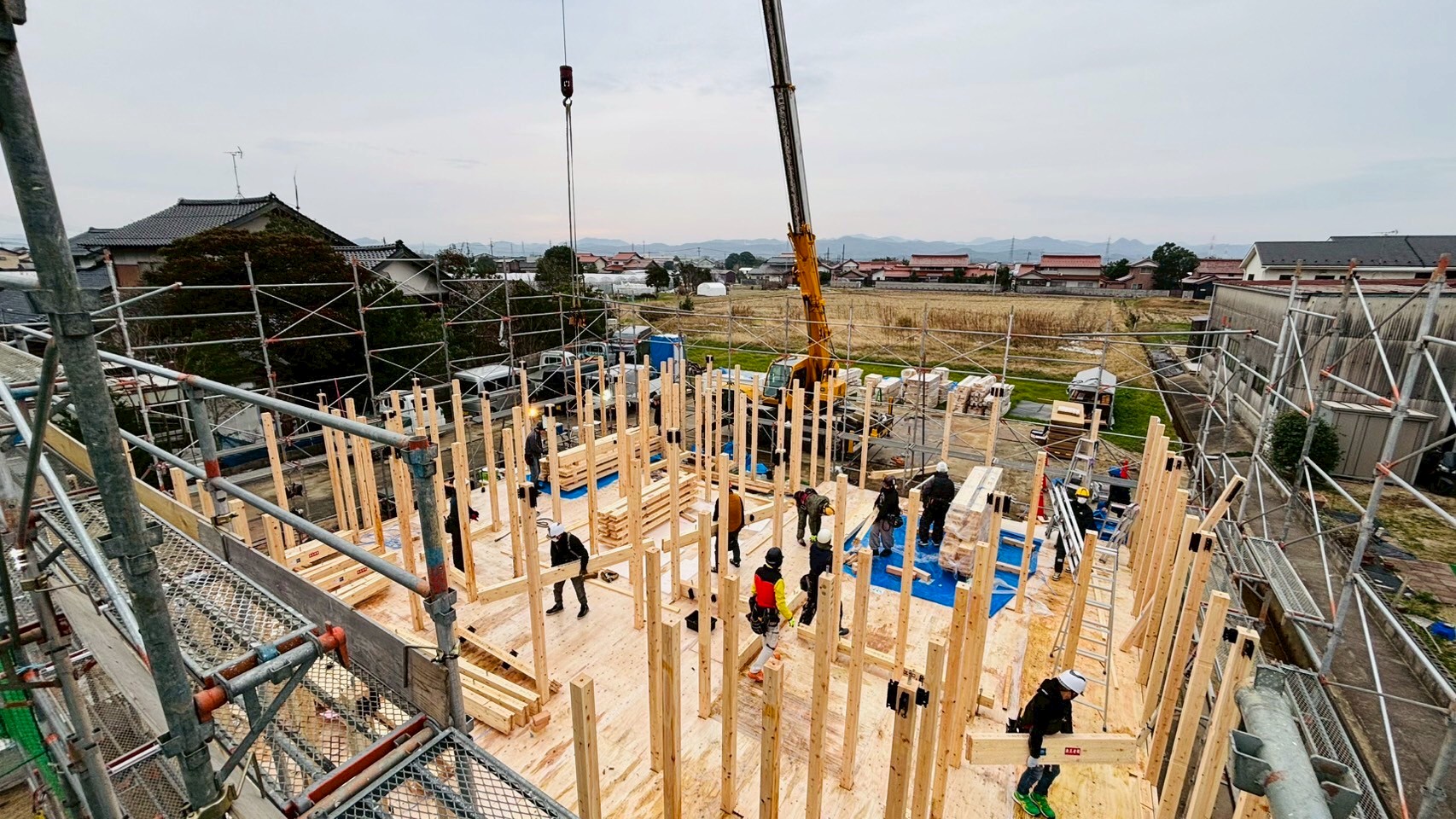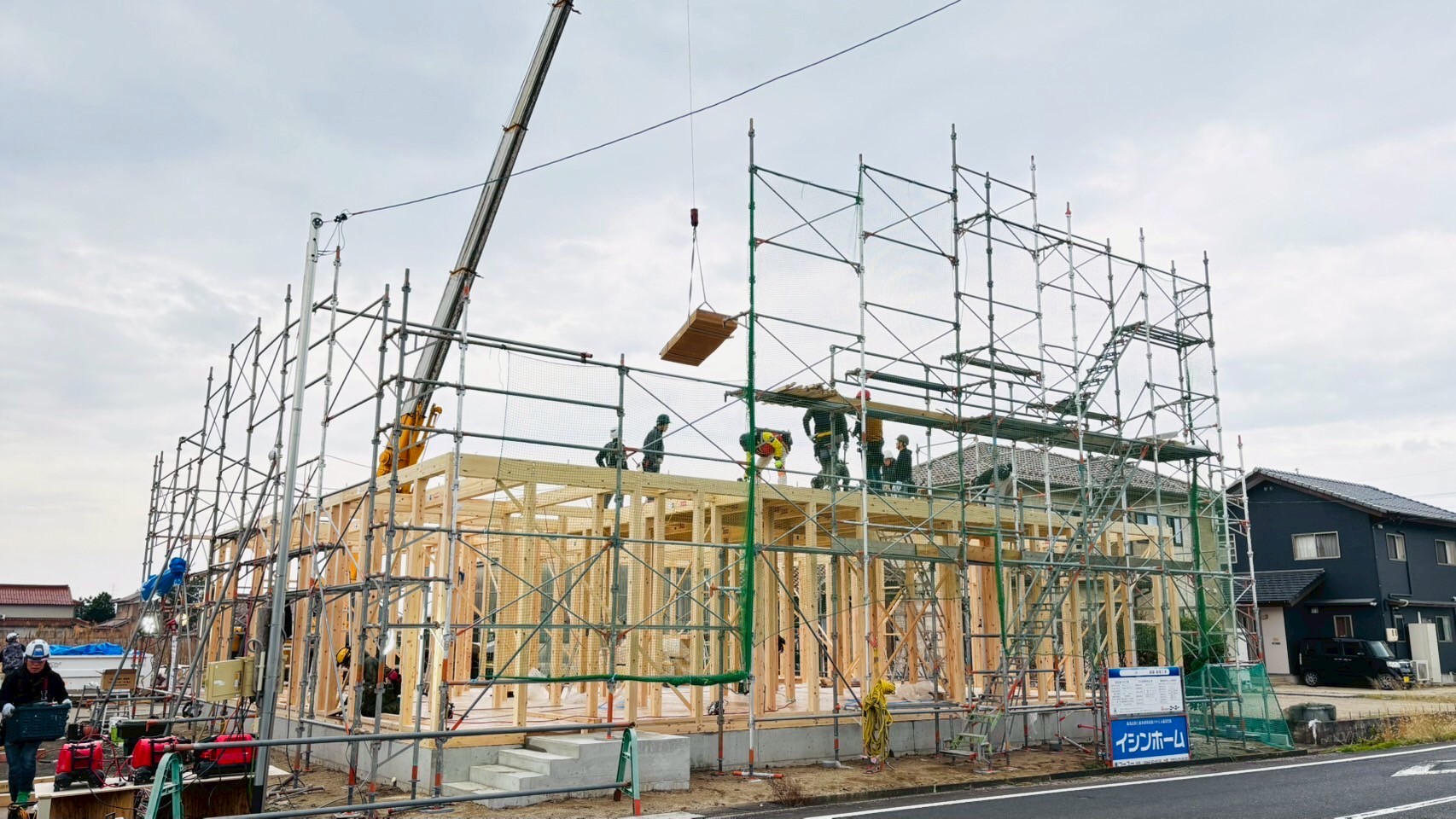 天気が心配でしたが、無事に上棟を迎えることが出来ました。 作業に携わっていただきました皆様、ありがとうございました。 お施主様も朝からお越しいただきありがとうございました。